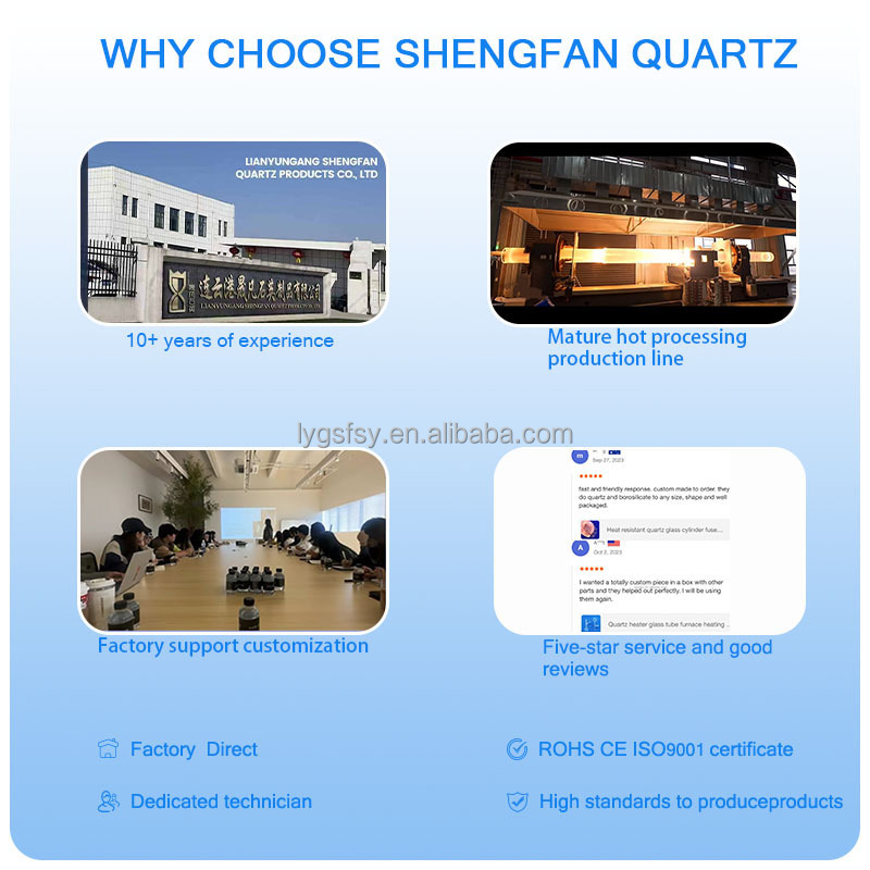Lianyungang Shengfan Quartz Product Factory là một nhà sản xuất chuyên nghiệp chuyên nghiên cứu và phát triển tấm thạch anh, ống thạch anh, vòm thạch anh, vòng thạch anh, cuvette và nhạc cụ thạch anh.Công ty có trụ sở tại Trung Quốc Crystal Capital - Donghai City, tỉnh Jiangsu, Trung Quốc. 70 km từ cảng Lianyungang, giao thông thuận tiện.số lượng doanh số hàng năm vượt quá 20 triệu USDVới triết lý về định hướng công nghệ, chất lượng đầu tiên,sự liêm chính và trách nhiệm, hoạt động bền vững,công ty dành riêng để thành lập một doanh nghiệp quốc tế với khả năng hoạt động tiêu chuẩn và bền vững.